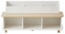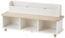 Praktische Schuhbank für Kinder, die als Sitzgelegenheit und Schuhregal dient. Mit einer Sitzhöhe von 29,9 cm und drei Fächern für Schuhe sowie zusätzlichen Fächern für Mützen und Schals bietet sie viel Stauraum. Hergestellt aus robustem MDF und in kompakten Maßen von 105 x 49,3 x 34,2 cm (B x H x T) ist sie ideal für den Eingangsbereich.