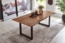 Edler Esszimmertisch Elvas aus massivem Mangoholz mit einer einzigartigen Baumkante und einem stabilen U-Gestell aus mattschwarzem Metall. Mit einer Größe von 180x90 cm und einer 26 mm dicken Tischplatte im Used-Look ist dieser Tisch nicht nur ein Blickfang, sondern auch äußerst langlebig und pflegeleicht. Die natürliche Oberfläche betont die schöne Maserung des Holzes und schafft eine angenehme Wohlfühl-Atmosphäre.