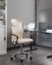 Höhenverstellbarer, beiger Bürostuhl mit Armlehnen und Rollen. Dieser Bürostuhl im ergonomischen Design bietet Unterstützung für Ihren Körper während langer Arbeitsstunden. Die verstellbare Sitzhöhe, die 360°-Drehung und ein Kippmechanismus ermöglichen es Ihnen, den Sitz an Ihren Komfort anzupassen. Die verchromte Metallbasis verfügt über 5 leichtgängige Rollen. Der dick gepolsterte Sitz ist mit einem durchlässigen Netzstoff bezogen, während der Kopfstütze hochwertiges Kunstleder verwendet wird.