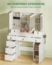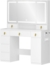 Großer Schminktisch mit einem beeindruckenden HD-Spiegel (105 x 51,5 cm) und dreifarbiger LED-Beleuchtung. Ausgestattet mit acht Schubladen und einem Ablagefach bietet er viel Stauraum für Kosmetik und Schmuck. Praktische Steckdosen und ein Haartrocknerhalter sorgen für zusätzlichen Komfort. Der Tisch vereint Funktionalität und Stil und ist ideal für ein perfektes Make-up-Erlebnis.
