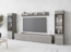 Die Wohnwand Doppo II in Cashmerebeige bietet eine stilvolle und funktionale Lösung für Ihr Wohnzimmer. Mit zwei Vitrinen, einem TV-Lowboard und einem Wandregal schafft sie ausreichend Stauraum und Präsentationsfläche. Die Möbel sind aus robusten Laminatplatten gefertigt und verfügen über eine moderne, grifflose Ausführung. Die optionale weiße LED-Beleuchtung setzt Ihre Einrichtung gekonnt in Szene.