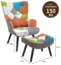 Der HomeMiYN Ohrensessel ist ein stilvoller Relaxsessel mit Hocker, der durch seinen gepolsterten Patchwork-Stoff und die robusten Metallbeine besticht. Mit einer Breite von 60 cm, einer Höhe von 96 cm und einer Tiefe von 47 cm bietet er optimalen Komfort. Der Hocker hat die Maße 51 x 37 x 41 cm. Ideal für jedes Zuhause oder Büro, vereint er modernes Design mit Funktionalität.