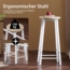 Das weiße Gestell bildet nicht nur einen ansprechenden Kontrast zu den Holztönen, sondern dient auch als praktische Fußstütze.
