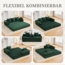 Flieks 2-Sitzer Sofa ist ein elegantes Schlafsofa mit einem stabilen Metallrahmen und einem modernen Stoffbezug in Emerald. Es bietet nicht nur Komfort mit drei weichen Kissen, sondern auch praktische Seitentaschen für eine ordentliche Aufbewahrung. Mit einem modularen Design eignet es sich ideal für kleine Räume und lässt sich individuell anpassen. Das Sofa wird komprimiert verpackt geliefert und ist schnell und unkompliziert einsatzbereit.