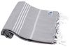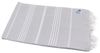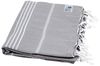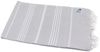 Das Hamamtuch Sultan in hellgrau mit weißen Streifen misst ca. 100 x 180 cm und besteht aus 100 % Baumwolle. Es bietet eine hervorragende Saugstärke und ist ideal für die ganze Familie. Das kompakte Design macht es zum perfekten Begleiter für Reisen, Strandurlaube oder als vielseitiges Wohnaccessoire. Mit Fransen an den kurzen Enden vereint es Funktionalität und Stil.