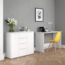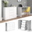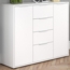 Das Sideboard Leon in Weiß ist die ideale Anrichte für Ihr Wohn- oder Schlafzimmer. Mit seinen großzügigen Abmessungen von 100 x 84 x 35 cm (BxHxT) bietet es reichlich Stauraum durch zahlreiche Schubladen. Hergestellt aus pflegeleichter Spanplatte mit einer Dicke von 16 mm und einer Melaminharzbeschichtung, vereint es Funktionalität und stilvolles Design. Das Möbelstück fügt sich harmonisch in Ihr Zuhause ein und ist vielseitig einsetzbar.
