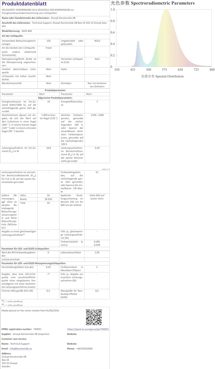 - Leuchtmittel tauschbar: Nein