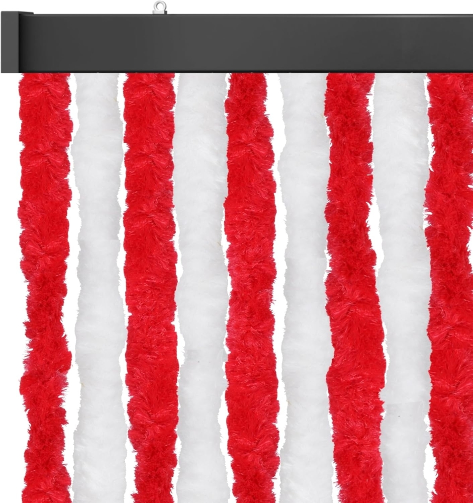 Flauschvorhang 100x220cm ( Rot-Weiß ), perfekter Insekten- und Sichtschutz für Ihre Balkon- und Terrassentür, viele Farben