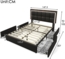 Dieses Polsterbett mit einer Liegefläche von 140x200 cm kombiniert modernes Design mit praktischer Funktionalität. Der hochwertige PU-Bezug und das dekorativ gestepte Kopfteil sorgen für einen eleganten Look. Die integrierte LED-Beleuchtung ist per Fernbedienung steuerbar und schafft eine stimmungsvolle Atmosphäre. Mit vier Schubladen bietet das Bett zusätzlichen Stauraum, während das verstellbare Kopfteil (ca. 10 cm Verstellbereich) hohen Komfort beim Entspannen ermöglicht.