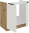 Der Spülenunterschrank ARIA mit einer Breite von 80 cm vereint Funktionalität und modernes Design. Die Fronten aus Spanplatte Laminat in Weiss ultra matt sind mit einer Anti-Fingerprint-Beschichtung versehen, die die Sichtbarkeit von Fingerabdrücken reduziert. Der Korpus in Eiche Artisan matt und die schwarzen Metallgriffe verleihen dem Schrank eine elegante Note. Mit zwei Türen und einem leisen Schließmechanismus ist dieser Unterschrank ideal für Ihre Küche.