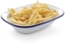 Weißer emaillierter Stahl mit einem schönen blauen Rand. Hochwertige Emaille, abriebfest. Stapelbar für eine praktische Lagerung. Spülmaschinengeeignet. Ofensicher. Nicht mikrowellengeeignet. Speisen und Desserts können direkt in der Form zubereitet werden.