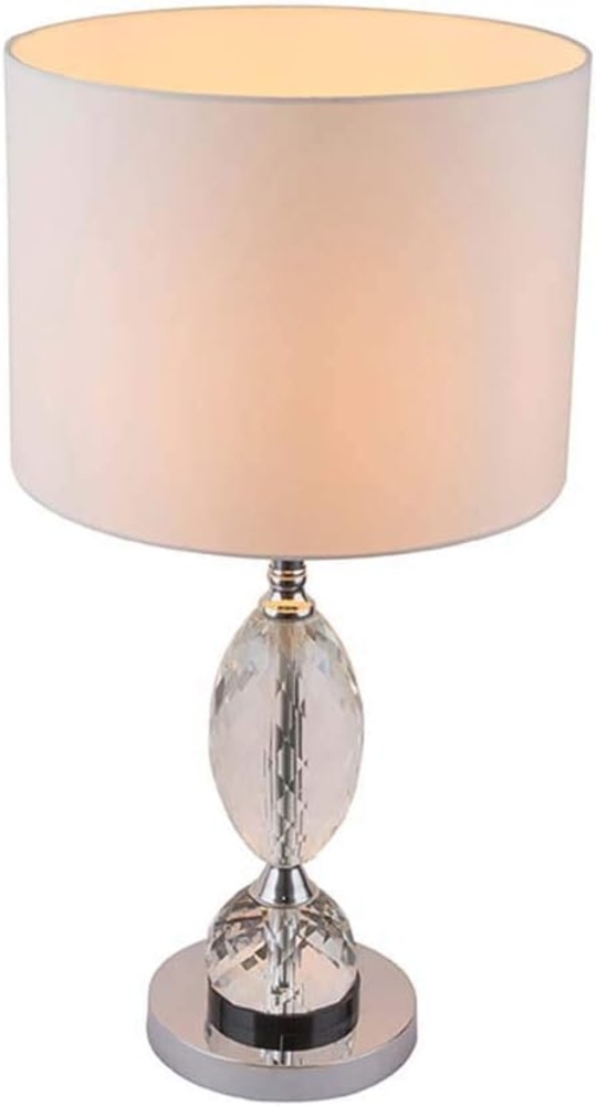 Die auffällig elegante und edle große Tischlampe dieser Modellserie punktet mit zeitlosem Design und tollen Materialien. Der weiße runde Textilschirm (Ø15cm), befestigt auf einem tollen Fuß aus verchromten Metall und klarem Kristall ist der Klassiker unter den Tischleuchten. Während diese Innenlampe über einen Ein/Aus Schaler verfügt, ermöglich Ihnen die verfügbare E14 Fassung das Leuchtmittel und damit die Lichtstärke und Lichtfarbe selber zu bestimmen (max.40W). Aufgrund ihrer Stromersparnis und Langlebigkeit empfehlen wir LED-Lampen.