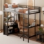 Dieses moderne Hochbett mit den Maßen 90x200 cm bietet eine clevere Kombination aus Schlaf-, Arbeits- und Stauraum. Der stabile Metallrahmen in Schwarz und die langlebigen MDF-Elemente garantieren hohe Stabilität und Langlebigkeit. Ausgestattet mit einem integrierten Schreibtisch, USB- und Steckdosenanschlüssen sowie Regalfächern, ist es ideal für kleine Räume. Das umlaufende Geländer und die feste Leiter sorgen für Sicherheit und einfachen Zugang.