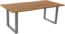 Der Esstisch Josy vereint stilvolles Design mit Funktionalität. Die 40 mm starke Tischplatte aus MDF in Wildeiche-Optik mit gefräster Baumkante verleiht jedem Raum eine natürliche Eleganz. Das silberne U-Gestell aus Metall sorgt für Stabilität und eine moderne Ästhetik. Mit den Maßen von 200 x 100 cm ist der Tisch vielseitig einsetzbar, sei es als Ess- oder Arbeitstisch.