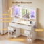 Der Dripex Schminktisch vereint modernes Design mit Funktionalität. Ausgestattet mit eleganten transparenten Vitrinen und RGB-Beleuchtung, bietet er eine großzügige Arbeitsfläche sowie 7 Schubladen und 4 Fächer zur optimalen Organisation Ihrer Beauty-Utensilien. Integrierte Steckdosen und USB-Anschlüsse sorgen für zusätzlichen Komfort. Die Montage ist dank detaillierter Anleitung einfach.
