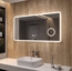 Der AQUABATOS Schminkspiegel ist ein eleganter LED-Wandspiegel mit einer Größe von 120 cm x 60 cm x 4,5 cm. Er verfügt über ein 4 mm starkes Kristallglas in Silber und einen stabilen Aluminiumrahmen, der Biegungen vermeidet. Die dimmbare Kaltweiß-Beleuchtung (6400 K) sorgt für eine optimale Ausleuchtung, während die 3-fache Vergrößerung und die integrierte Digitaluhr praktische Funktionen bieten.