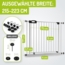 Maximale Sicherheit für Ihr Kind - Das BOMI "Merle" Kinder Schutzgitter ist ein nach DIN EN 1930:2012 geprüftes, selbstschließendes Tür- und Treppenschutzgitter, dem Sie vertrauen können. Kleine Kinder haben einen großen Entdeckerdrang. Sie lieben es ihre Umgebung zu erkunden. Sobald sie krabbeln können gibt es kein Halten mehr. Die ersten Schritte sorgen bei Eltern und Kind für große Begeisterung. Ein erster wichtiger Meilenstein in der kindlichen Entwicklung. Spätestens jetzt wird es Zeit an ein Baby-Gitter oder ein Treppenschutzgitter nachzudenken. Mit der wachsenden Mobilität Ihres Kindes lauern auch überall neue Gefahrenquellen im Haus. Warum Türgitter elementar wichtig für die Sicherheit Ihres Kindes sind Sie als Eltern sollten eventuelle Gefahrenquellen kennen, die in der Umgebung Ihres Kindes lauern. Um zu verhindern, dass der kleine Entdecker Schaden nimmt, sollten Sie rechtzeitig Vorsorge treffen. Die Gesundheit und das Wohlergehen Ihres Kindes sind das höchste Gut. Ergreifen Sie rechtzeitig geeignete Maßnahmen, damit sich Ihr Kind nicht durch eine offene Tür in Gefahr begibt, oder gar eine Treppe herunterfällt. Ein Kindergitter ist die hier passende Lösung. Mit einem Türgitter für Kinder können Sie sich entspannt zurücklehnen und sich unbesorgt den Aufgaben im Haushalt widmen. Ein Absperrgitter schützt Ihr Kind. Das Kindergitter bewahrt Babys und Kleinkinder davor, die für kleine Erdenbürger eventuell gefährlichen Zonen zu betreten. Im Handumdrehen einsatzbereit- das Türschutzgitter ohne Bohren Unsere Treppenschutzgitter lassen sich mühelos in wenigen Minuten und mit geringem Aufwand montieren, Handwerkliche Kenntnisse sind nicht erforderlich! Sie benötigen weder einen Bohrer, noch sonstiges aufwändiges Werkzeug. Unsere Türschutzgitter werden einfach durch Spannung in den Türrahmen oder den Treppenabgang geklemmt. Ein Vorteil, der sich nicht nur in Mietwohnungen bezahlt macht! In angemieteten Räumen ist es oftmals nicht zulässig, Türen oder Türrahmen anzubohren. Und auch im eigenen Haus, ist es oft nicht wünschenswert, das Holz oder auch ein anderes Material zu beschädigen. Schließlich wird ein Kindergitter nur über einen relativ begrenzten Zeitraum benötigt. Normalerweise sind dies lediglich ca. 24 Monate. Was also tun, um die Sicherheit des Kindes zu gewährleisten? Bei einem Schutzgitter ohne Bohren wird das Kindergitter mit vier äußeren Druckstellen fest im Türrahmen verankert. Durch einfaches Drehen nach links oder rechts werden die Druckpunkte weiter auseinander bzw. wieder zusammen bewegt. So erreicht man problemlos ein Maximum an Halt, der dem Baby-Gitter- und damit Ihrem Kind - die nötige Sicherheit garantiert. Multitalent Türschutzgitter Unsere hochwertigen Türschutzgitter eignen sich unter anderem auch hervorragend als Haustiergitter/Hundeschutzgitter. Jeder Hundehalter kennt das Problem - man möchte nicht, dass der kleine Liebling bestimmte Bereiche betritt. Ein Haustiergitter/Hundeschutzgitter kann ein wirklich unentbehrlicher Alltagshelfer sein. Ein Tierschutzgitter hilft dabei, Probleme mit dem Nachbarn vorzubeugen. Der kleine Racker besucht all zu gerne die Blumenbeete der netten Dame von nebenan? Sie möchten aber nicht darauf verzichten, die Terrassentür geöffnet zu haben? Dann ist ein Hundegitter die optimale Lösung. Ein passendes Türgitter erlaubt es dem kleinen Vierbeiner nicht vom Geschehen ausgeschlossen zu sein, ohne dass er sich in unerwünschten Bereichen bewegen kann. Die Vorteile unserer Schutzgitter im Überblick: • hochwertige Türschutzgitter aus Metall für Kinder von 6 - 24 Monaten geeignet • Zwei-Wege-Öffnung: Baby Tür Gitter öffnet IMMER in Laufrichtung. Open-Stop-Funktion auf 90°: Schutzgitter Tür lässt sich bei Bedarf feststellen, sodass der Durchgang offen ist. Auto-Close und Auto-Lock: Das Tür und Treppengitter schließt automatisch und verriegelt verlässlich. Die Baby Tür kann wahlweise mit der Verriegelung links oder rechts montiert werden • extrabreite Durchgangstür von 75 cm - Standard-Gitter bieten lediglich eine Türbreite von 50 cm • hält durch einen einfachen Klemmmechanismus (kann alternativ auch verschraubt werden) • schützt Ihre Wände vor Abnutzung - um der Wand, dem Türrahmen oder dem Geländer zusätzlichen Schutz zu bieten, sind im Lieferumfang unserer Babygitter hochwertige Wandschutz-Platten enthalten • unsere Türgitter für Kinder sitzen bombenfest - selbst wenn ihr Kind an dem Baby-Gitter rüttelt, bewegt es sich nicht • auch als Haustiergitter/Hundeschutzgitter geeignet • garantierte Sicherheit - entspricht der DIN EN1930 • Treppenschutzgitter die, dank hochwertiger Materialien und exzellenter Verarbeitung, mit ausgezeichneter Qualität überzeugen Maße des Sicherheits-Gitters im Überblick: • Auflagefläche der Klemmschrauben: 3,4 cm • Türbreite: 75 cm • Erhältliche Breiten: 83 bis 243 cm • Gitterhöhe: 77 cm • Abstand der Gitterstäbe: 6 cm Treppenschutzgitter- warum Sie auf lästiges Bohren verzichten können, ohne die Sicherheit Ihres Kindes zu gefährden Auch wenn einige Anbieter damit werben, dass nur die von Ihnen angebotenen Türgitter für Kinder dazu geeignet sind, um Unfälle zu verhindern - diese Behauptung entbehrt jeder Grundlage. Die typischen Unfälle, die sich im Zusammenhang mit einem Türgitter für Kinder ereignen, stehen in keinem Zusammenhand damit, ob das Absperrgitter verschraubt oder "nur" geklemmt ist. Die besten getesteten Schutzgitter sind nachweisbar Modelle, die ohne Bohren auskommen. Unsere Treppenschutzgitter können Sie wahlweise durch Verschrauben oder Klemmen sicher befestigen. Unfälle ereignen sich fast ausschließlich, weil andere Sicherheitsvorkehrungen außer acht gelassen wurden. Die häufigsten Unfallursachen sind, dass das Kind beginnt sich an den Stäben hochzuziehen und beim Klettern über das Baby-Gitter fällt. Absperrgitter sind normalerweise für Kinder bis zu einem Alter vo