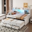 Das Flieks Daybett ist ein vielseitiges Tagesbett mit den Maßen 90 x 200 cm und einem ausziehbaren Bett mit 90 x 190 cm. Es bietet eine praktische LED-Beleuchtung und Stauraum durch Schubladen. Hergestellt aus Spanplatte und MDF, ist es robust und hat eine Belastbarkeit von bis zu 200 kg. Die empfohlene Matratzenstärke beträgt 10 cm für das Hauptbett und 10-15 cm für das Ausziehbett.