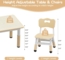 Die GarveeMore Kindersitzgruppe besteht aus einem höhenverstellbaren Tisch und vier Stühlen, die für Kinder von 3 bis 8 Jahren geeignet sind. Der Tisch hat eine Größe von 80x60 cm und ist in 7 Höhenstufen von 48–60 cm verstellbar. Die Stühle sind in 3 Höhenstufen (26 cm, 28 cm, 30 cm) erhältlich. Das Set ist aus ungiftiger Spanplatte und PP gefertigt, sicher und langlebig. Ideal für kreative Aktivitäten wie Zeichnen, Basteln und Spielen.