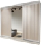 Der Compleo Schwebetürenschrank mit einer Breite von 250 cm vereint modernes Design und Funktionalität. Die dekorativen Lamellen auf der Vorderseite und der integrierte Spiegel verleihen dem Schrank eine stilvolle Note. Hergestellt aus hochwertiger Laminatplatte (16 mm) und ausgestattet mit Aluminiumführungen sowie gelagerten Rollen, bietet dieser Kleiderschrank ausreichend Stauraum durch Regale und Stangen.
