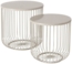 Das Set aus zwei funktionalen Metalltischen CINDY vereint modernes Design mit praktischer Anwendung. Mit unterschiedlichen Höhen von 41 cm und 47 cm passen sie sich flexibel Ihren Bedürfnissen an. Die runden Tischplatten mit Durchmessern von 38 cm und 45 cm sowie die robuste Konstruktion aus pulverbeschichtetem Stahl garantieren Langlebigkeit und eine maximale Belastbarkeit von 10 kg. Ideal für Wohnzimmer und Schlafzimmer, bieten sie zudem eine praktische Aufbewahrungslösung.