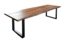 Esstisch "Liam" aus massiver Akazie in nussbaumfarben mit schwarzem U-Gestell. Die 35 mm dicke Holzplatte und die natürliche Baumkante verleihen diesem 240 x 100 cm großen Tisch Stabilität und einen modernen Look. Jeder Tisch ist ein Unikat, geprägt von individueller Holzmaserung und natürlicher Formgebung. Ideal für verschiedene Einrichtungsstile.