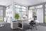 Schreibtisch direct 150 cm Dekor Beton mit Kufenfuß Büromöbel - Made in Germany. Der rechteckige Schreibtisch mit einer pflegeleichten Oberfläche in Beton Nachbildung besitzt eine praktische Klappfunktion für optimalen Zugang zum Kabelmanagement. Die Fugenbreite zwischen Klappe und fester Platte ist einstellbar, je nach Kabelstärke. Die 22 mm starke Arbeitsplatte hat eine strapazierfähige ABS Dickkante. Eine Holztraverse dient als Sichtschutz und sorgt für optimale Standfestigkeit. Das stabile Metall- Kufengestell mit strapazierfähiger, weißer Pulverbeschichtung hat integrierte Stellschrauben zum Ausgleich von Unebenheiten.