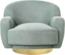 Stilvoller Polstersessel LEJRE in Grün mit goldener Basis. Dieser glamouröse Sessel vereint Komfort und Eleganz und ist ideal für Ihr Wohnzimmer oder Schlafzimmer. Die weiche Polsterung und die bequemen Armlehnen sind aus hochwertigem, wasserabweisendem Polyester gefertigt, was Langlebigkeit und einfache Pflege garantiert. Der stabile Metallfuß sorgt für einen edlen Look und eine maximale Belastbarkeit von 150 kg.