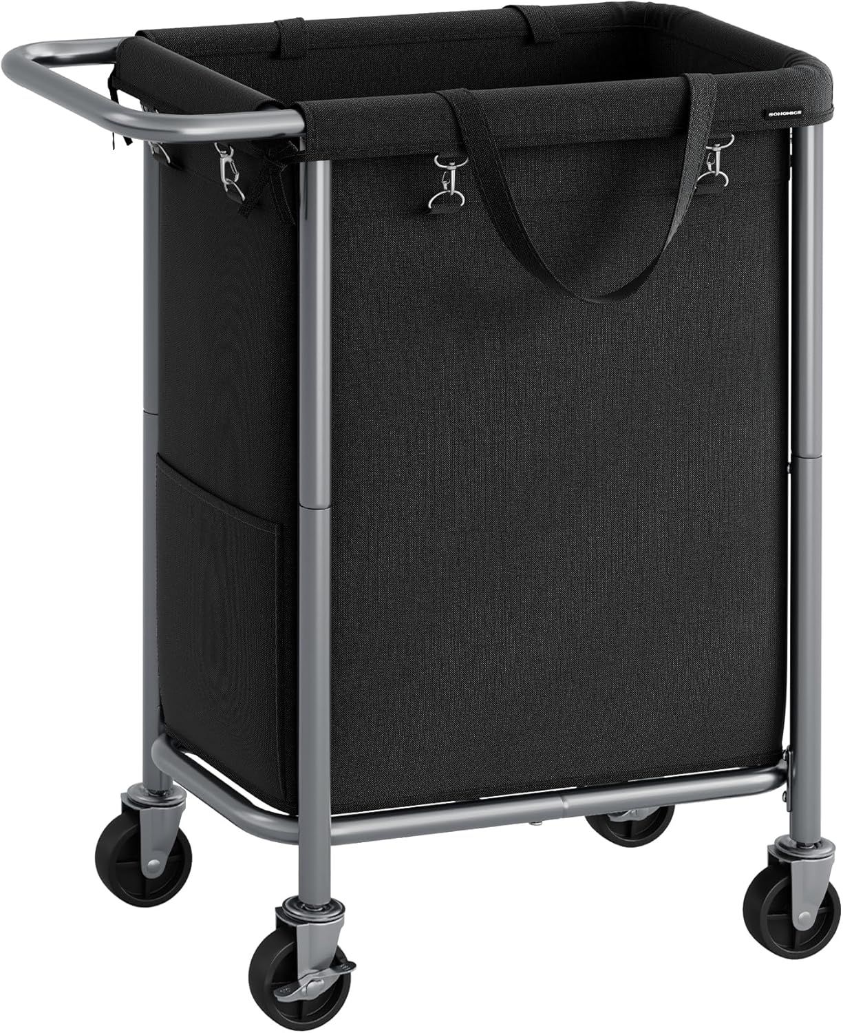 Der Songmics Wäschekorb mit Rollen bietet Ihnen eine praktische Lösung zur Wäscheaufbewahrung. Mit einem geräumigen Volumen von 90 Litern und den kompakten Abmessungen von 61 x 29 x 81 cm ist er ideal für einen 2-Personen-Haushalt. Der abnehmbare Wäschesack aus strapazierfähigem 600D Oxford-Gewebe ist wasserabweisend und lässt sich leicht reinigen. Dank der stabilen Stahlrahmenkonstruktion und der vier beweglichen Räder ist der Wäschekorb mühelos zu transportieren.