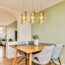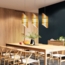- Modernes Design mit weißen Textilschirmen und naturfarbenen Holzlamellen