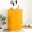 Dieses robuste Sideboard in Senfgelb wird mit seinem trendigen und praktischen Design zum Mittelpunkt Ihres Wohnzimmers. Der Rahmen aus kaltgewalztem Stahl sorgt für Stabilität und eine glatte Oberfläche. Mit 6 Fächern und einer maximalen Tragfähigkeit von 90 kg bietet es reichlich Stauraum für Ihre Gegenstände. Die Pflegeleichtigkeit und die praktischen Griffe runden das Gesamtbild ab.