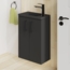 Waschbecken hergestellt in Spanien – wird komplett montiert geliefert. Badmöbel Set mit 2 Türen mit Grifföffnung in mattem Schwarz. Mit Keramikwaschbecken und glattem Spiegel in einem modernen und eleganten Stil. Ideal für kleine Bäder dank 22 cm Tiefe. Bestehend aus einem Hängeschrank an der Wand mit zwei Türen, einschließlich Keramikwaschbecken und glattem Spiegel. Maße des Badezimmerschranks: 40 cm (L) x 60 cm (H) x 22 cm (T). Maße der Keramikarbeitsplatte: 40 cm (L) x 22 cm (T). Maße des Spiegels: 40 cm (L) x 60 cm (H). Griff 13 cm lang. Das Möbelstück besteht aus 2 Türen mit Öffnung durch einen Griff in mattem Schwarz, Schließsystem mit Dämpfung, für ein geräuschloses Schließen. Das Möbelstück ist aus Melamin 16 mm dick. Ein Möbelstück mit modernem Design, bringt Eleganz und Ordnung in Ihr Badezimmer. Möbel in verschiedenen Ausführungen erhältlich: Mattweiß, Moosgrün und Azier. Wir haben FSC-ZERTIFIKAT, es ist unser Engagement für die Gesellschaft, bescheinigt, dass die verwendeten Rohstoffe in nachhaltigen Wäldern und unter angemessener Waldbewirtschaftung gewonnen wurden, die das zukünftige Überleben des Waldes gewährleisten und die Qualität seiner Flora und Fauna verbessern. Montiertes Möbelstück: Das Möbelstück wird komplett montiert geliefert, mit Montageanleitung (evtl. nicht in deutscher Sprache). Nicht im Lieferumfang enthalten: Wasserhahn, Siphon und Ablaufventil. Geeignet für die Installation mit jedem Standard-Wasserhahn und Siphon.