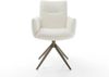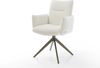 Der Drehstuhl Jova-Flex mit Armlehnen vereint elegantes Design und außergewöhnlichen Sitzkomfort. Der Bezug aus pflegeleichtem Bouclé in warmem Weiß und das breite Kreuzgestell mit Titan-Effektfinish sorgen für eine einladende Optik. Mit einer 360° Drehfunktion und hochwertiger Polsterung aus Taschenfederkern erleben Sie himmlisches Sitzvergnügen. Ideal für Ihr Esszimmer, bietet dieser Stuhl nicht nur Stil, sondern auch eine Belastbarkeit von bis zu 125 kg.