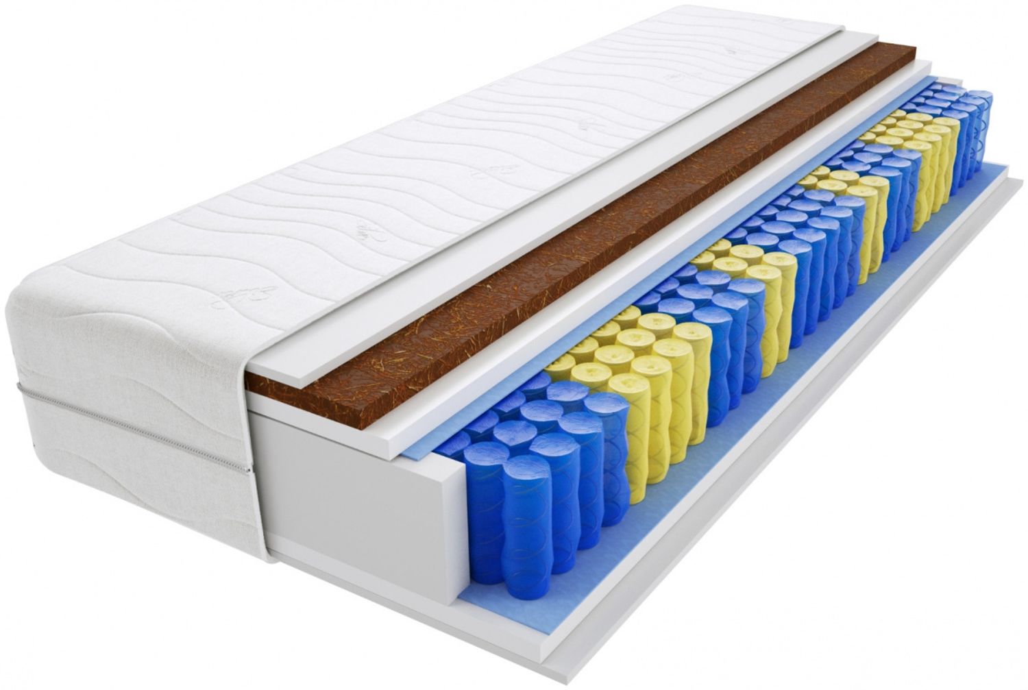 Die Matratze Nepal in der Größe 95 x 195 cm bietet Ihnen eine doppelseitige Schlaflösung mit einer mittelharten und einer harten Seite. Sie ist mit einem hochwertigen Taschenfederkern ausgestattet, der aus 9 Zonen mit 262 Stück pro m² besteht, und sorgt für optimalen Schlafkomfort. Der hypoallergene Bezug ist abnehmbar und waschbar, während der HR-Schaumstoff und die Kokosfaser für eine perfekte Körperanpassung und Belüftung sorgen.