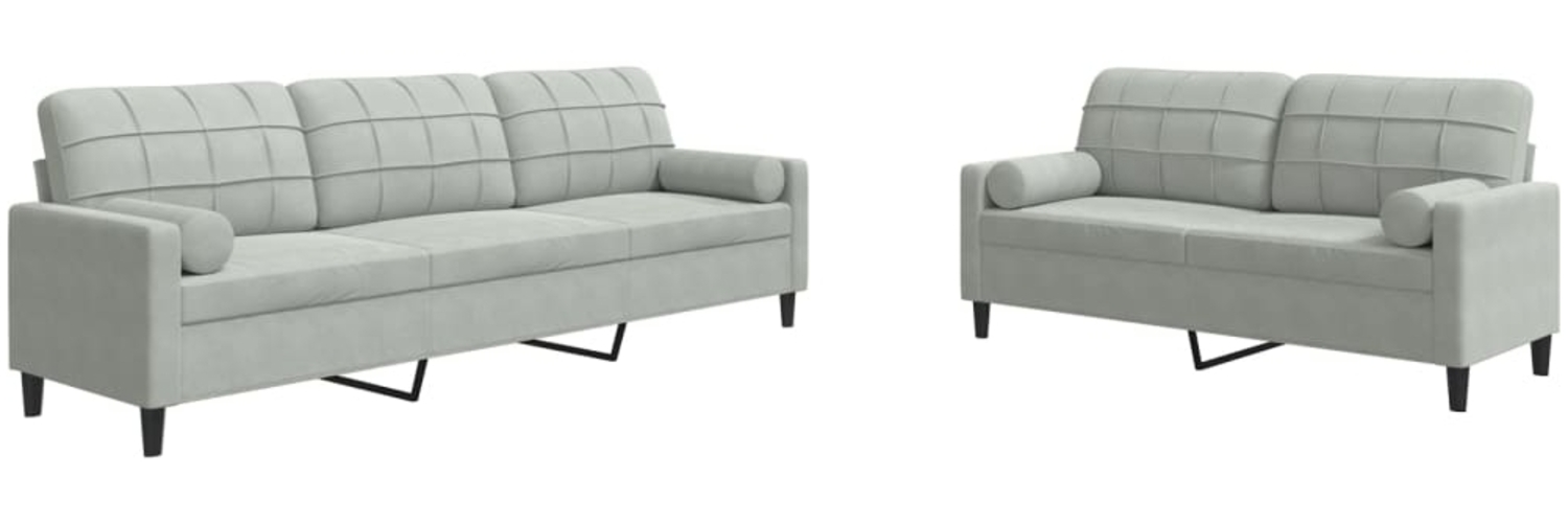 vidaXL 2-tlg. Sofagarnitur mit Kissen und Nackenrollen Hellgrau Samt 3278491
