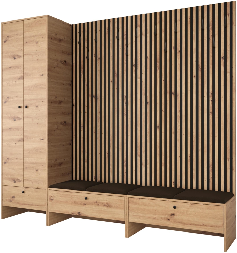 Garderoben-Set Melire VI, Kleiderschrank, Unterschrank, Griffe aus Metall (Farbe: Artisan Eiche, Manila 04)