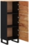 Stilvolles Highboard aus massivem Akazienholz und Eisen mit 3 Türen und den Abmessungen 40 x 33 x 110 cm. Das robuste und langlebige Akazienholz bietet viel Stauraum in 3 Fächern. Die stabilen Eisenbeine verleihen dem Möbelstück einen industriellen Charme. Jedes Highboard ist aufgrund natürlicher Variationen ein Unikat. Die Montage erfordert eine Wandbefestigung zur Sicherung gegen Umkippen.