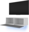 Skylara – Fernsehschrank / TV-Lowboard mit LED RGB Beleuchtung in Weiß Matt und Grau Hochglanz vereint modernes Design mit praktischer Funktionalität. Mit einer Breite von 100 cm, einer Höhe von 34 cm und einer Tiefe von 40 cm bietet es ausreichend Stauraum. Die grifflose Optik und der schwebende Look verleihen dem Möbelstück eine zeitgemäße Eleganz. Die integrierte LED Beleuchtung mit Farbwechsel-Funktion sorgt für stimmungsvolles Licht.