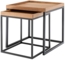 Information • Beistelltisch-Set Lissabon Art. 200931-Li • Platte Wildeiche massiv geölt • Metallgestell schwarz pulverbeschichtet • Wird montiert geliefert Beschreibung Entdecke das Beistelltisch-Set Lissabon aus massiver Wildeiche – eine stilvolle und praktische Ergänzung für dein Zuhause! Gefertigt aus hochwertiger Wildeiche, einem nachwachsenden Rohstoff, bringt dieses 2er-Set die natürliche Schönheit und Nachhaltigkeit direkt in dein Wohnzimmer. Die beiden Tische haben die Maße 50 cm Breite, 50 cm Höhe und 50 cm Länge sowie 40 cm Breite, 40 cm Höhe und 40 cm Länge. Diese unterschiedlichen Größen bieten dir vielseitige Einsatzmöglichkeiten und harmonieren perfekt miteinander. Die Tischplatten aus massiver, geölter Wildeiche überzeugen durch ihre einzigartige Maserung und strahlen eine warme, einladende Atmosphäre aus. Das schwarze, pulverbeschichtete Metallgestell setzt einen modernen Akzent und sorgt gleichzeitig für Stabilität und Langlebigkeit. Diese Kombination aus Naturholz und Metall macht das Beistelltisch-Set Lissabon zu einem echten Blickfang in deinem Zuhause. Lissabon steht für erstklassige Verarbeitung und höchste Qualität. Das Set wird montiert geliefert, sodass du die Tische sofort nutzen kannst, ohne Zeit und Mühe in den Aufbau investieren zu müssen. Platziere die Tische nebeneinander oder an verschiedenen Orten – sie passen sich flexibel deinen Bedürfnissen an und bieten dir die perfekte Ablagefläche für deine Lieblingsdekorationen, Bücher oder eine Tasse Kaffee. Gönne dir und deinem Zuhause ein Stück Natur und Stil mit dem Beistelltisch-Set Lissabon. Diese Möbelstücke vereinen Funktionalität und ästhetisches Design und werden schnell zum unverzichtbaren Bestandteil deiner Einrichtung. Bestelle jetzt und erlebe, wie Lissabon dein Wohnambiente aufwertet und dir ein Lächeln ins Gesicht zaubert. Verleihe deinem Zuhause einen Hauch von natürlicher Schönheit und modernem Charme mit dem Beistelltisch-Set Lissabon. Lass dich von der hochwertigen Verarbeitung und dem einzigartigen Design begeistern und genieße die perfekte Mischung aus Funktionalität und Eleganz! Maßangaben • Bx Hx T: 50 x 50 x 50 cm • Bx Hx T: 40 x 40 x 40 cm Lieferumfang 2 Beistelltische, montiert