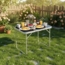 Praktischer klappbarer Campingtisch für Outdoor-Abenteuer. Mit einem Gewicht von nur 3,2 kg und einem integrierten Tragegriff ist der Tisch leicht zu transportieren. Die robuste Konstruktion aus MDF, Eisen und Aluminium sorgt für Stabilität und Langlebigkeit. Die wasserabweisende Oberfläche macht ihn pflegeleicht. Ideal für Camping, Picknicks oder Gartenpartys.