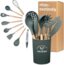 Praknu Kochbesteck-Set – 8-teiliges Küchenutensilien Set aus Holz mit Halterung. Dieses Set umfasst alle wichtigen Küchenhelfer, darunter Schaumlöffel, Zange, Schneebesen, Teigschaber, Pfannenwender, Pasta löffel, Schöpflöffel und Servierlöffel. Die hitzebeständigen Silikonutensilien sind bis 270 °C geeignet und schonen Ihre beschichteten Töpfe und Pfannen.