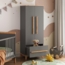 Entdecken Sie den Kinderkleiderschrank Malia in Grau/Artisan, der mit seinen Maßen von 70 x 186,8 x 53,4 cm (BxHxT) ausreichend Platz für die Kleidung Ihrer Kleinen bietet. Aus robuster Spanplatte mit einer Melaminharzbeschichtung gefertigt, verfügt der Schrank über 4 verstellbare Einlegeböden, eine Kleiderstange und eine praktische Schublade. Das moderne Design harmoniert perfekt mit jedem Kinderzimmer.