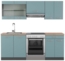 Die Vicco Küchenzeile in Blau-Grau/Anthrazit mit einer Breite von 200 cm ist die ideale Komplettlösung für Ihre Küche. Sie bietet eine elegante und gut organisierte Umgebung für die Essenszubereitung. Die höhenverstellbaren Füße sorgen für eine perfekte Anpassung, während die Arbeitsplatte aus Goldkraft Eiche und die Melaminharzbeschichtung für Langlebigkeit und Stil stehen.