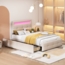 Dieses moderne LED-Bett in der Größe 90x200 cm vereint klassischen Stil mit praktischem Stauraum. Das verstellbare Kopfteil passt sich unterschiedlichen Matratzendicken an und sorgt für eine harmonische Integration in Ihr Schlafzimmer. Zwei integrierte Schubladen bieten zusätzlichen Platz für Ihre persönlichen Gegenstände. Die LED-Beleuchtung mit 24-Tasten-Fernbedienung ermöglicht stimmungsvolle Lichteffekte in 16 Farben und vier automatischen Wechselmodi. Die stabile Konstruktion aus Holz und Polsterung hat eine Tragfähigkeit von bis zu 150 kg.