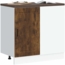 vidaXL Küchenunterschrank Porto in Räuchereiche aus Holzwerkstoff bietet eine optimale Lösung für Ihren Küchenraum. Mit seinen großzügigen Abmessungen von 86 x 46 x 81,5 cm (B x T x H) und einer maximalen Belastbarkeit von 70 kg, bietet er ausreichend Stauraum für Geschirr und Küchengeräte. Die praktischen Türen sorgen für Ordnung, während die verstellbaren Füße eine Anpassung an Ihre Kücheneinrichtung ermöglichen. Die glatte Oberfläche erleichtert die Reinigung und Pflege.