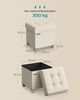 Der Songmics Sitzhocker mit Stauraum vereint elegantes Design und hohen Sitzkomfort. Mit einer schicken Oberfläche aus Leinenimitat und hochelastischem Schaumstoff bietet er nicht nur eine bequeme Sitzgelegenheit, sondern auch zusätzlichen Stauraum. Die robuste Konstruktion aus MDF-Platten trägt bis zu 300 kg und eignet sich ideal für die Aufbewahrung von Kleidung, Büchern und Zeitschriften. Die rutschfesten Holzbeine sorgen für Stabilität und schützen Ihren Boden.