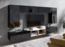 Die Wohnwand „Kossana 23“ von AX LIVING vereint modernes Design mit praktischem Stauraum. Mit einer Breite von 300 cm und einer eleganten Kombination aus Schwarz und goldener Eiche bietet sie ausreichend Platz für Ihre Wohnaccessoires. Die Wohnwand besteht aus laminierten Möbelplatten und umfasst Hängeschränke sowie TV-Schränke, die durch das Push-to-Open-System leicht zu bedienen sind. Ideal für ein stilvolles und funktionales Wohnzimmer.