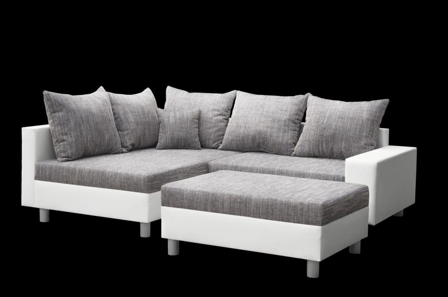 Couchgarnitur Allegra L-Form Weiß -Grau inkl. Hocker /Ausführung Links
