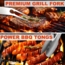 - Enthält: Pfannenwender, Gabel, Zange, Pinsel, Reinigungsbürste mit zusätzlichem Bürstenkopf, Fleischthermometer, Fleischspritze, BBQ-Handschuhe, Silikon-Hamburgerform, 8 Maishalter, 4 Kabob-Spieße, 4 Steakmesser und -gabeln, 2 Salzstreuer