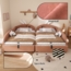 Polsterbett, Kombiniertes Kinderbett, Niedliches Häschen-Kopfteil, Hydraulisches Bett mit Stauraum Dieses Kinderbett kombiniert entzückendes Design mit praktischer Funktionalität - ein echtes Highlight für jedes Kinderzimmer! Sein niedliches Häschen-Kopfteil verleiht ihm einen liebevollen, verspielten Charme, der die Herzen von Kindern sofort erobert und die Fantasie anregt. Dank des hydraulischen Systems bietet es einen geräumigen Stauraum, der sich mühelos öffnet und schließt. Perfekt, um Spielsachen, Klamotten oder Decken ordenlich zu verstauen-so bleibt das Kinderzimmer immer aufgeräumt und übersichtlich. Stabile Lattenroste sorgen für eine feste, gleichmäßige Auflage, die zuverlässigen Schlafkomfort garantiert und lange haltbar ist. Zusätzlich ausgestattet mit handlichen Gurtgriffen, macht es das Verschieben oder Justieren des Bettes zum Kinderspiel-praktisch für Eltern und flexibel in der Nutzung. Ob modern, farbenfroh oder minimalistisch-das Bett passt nahtlos in verschiedene Kinderzimmerdekorationen und bereichert den Raum mit seinem sympathischen Aussehen. Ein Produkt, das Kinder mit seiner Süße begeistert und Eltern mit seiner Praktikabilität überzeugt! Verkaufsstellen: 1. Niedliches Häschen-Kopfteil 2. Hydraulisches Bett mit Stauraum 3. Stabile Lattenroste 4. Mit Gurtgriffen 5. Geeignet für verschiedene Kinderzimmerdekorationen Gewicht & Maße Gesamtgröße 410x187x92cm Gesamtgewicht 68KG Passende Matratzen (Matratze nicht enthalten.) 90x200cm *2(Dicke der Matratze≤20cm) Tragfähigkeit 150KG Merkmale Produktname Polsterbett Farbe Rosa+Weiß Gestellmaterial Samt Lattenmaterial Sperrholz Montageverfahren selbst installieren Ist die Struktur von links nach rechts austauschbar nein FSC-Zertifikat ja Paketnummer 4 Herkunftsland China Hinweis Dieses Produkt enthält 4 Pakete, es ist normal, 4 Pakete zu unterschiedlichen Zeiten zu erhalten, bitte haben Sie Geduld.